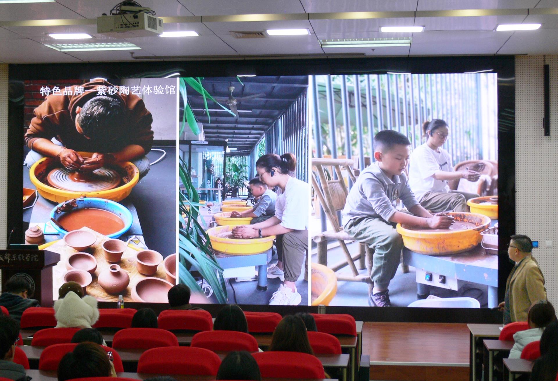 讲座中,田勇教授从“艺术乡建”的现实意义出发,结合其在“川音艺谷”的实践探索,系统阐述了如何通过“艺术+高校+乡村”的模式,推动乡村文化振兴与产业融合。田勇教授详细介绍了川音艺谷从策划、资源整合、业态布局到知识产权转化全过程的创新路径,展示了艺术如何真正“扎根田野”,激活乡村内在生命力。
