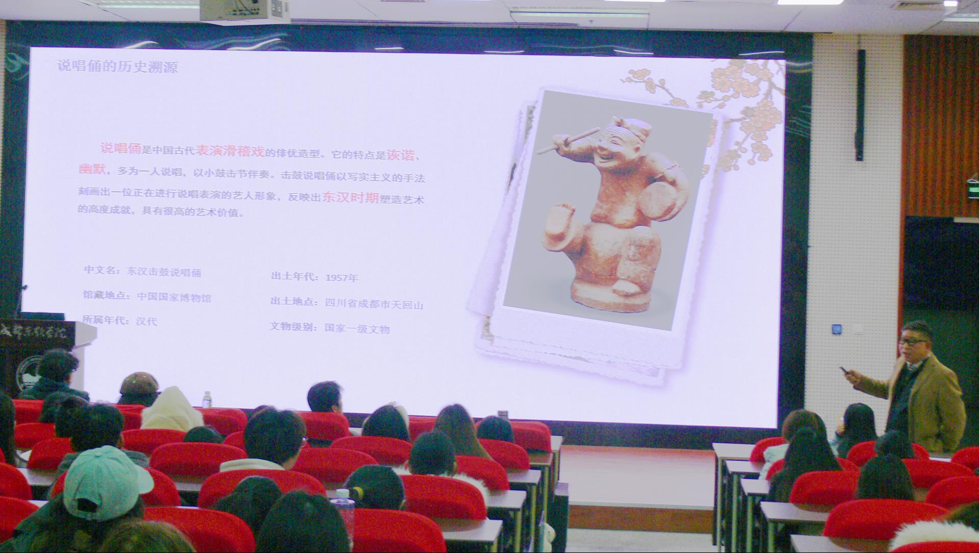 2025年11月21日中午,数智应用技术学院主办的“数智匠新”讲坛第十七讲在A3-104国际报告厅成功举行。本次讲座由刘经纬老师主持,特邀四川音乐学院原成都美术学院副院长、川音艺谷创始人田勇教授担任主讲嘉宾,以《从希望的田野到数字新生:艺术乡建与文物IP活化的创新之路》为主题,为在场师生带来一场关于艺术振兴乡村与文化IP创新的深度分享。