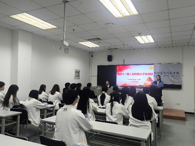 为深入学习贯彻习近平新时代中国特色社会主义思想和党的二十大精神,切实提高入党积极分子的政治素养和理论修养,从源头上把好党员"入口关",10月13日,数智应用技术学院第四十一期入党积极分子培训班开班仪式暨第一堂课于C7-201教室顺利举行。