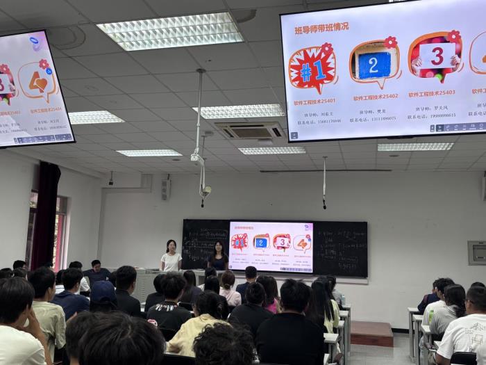 9月16日和9月18日,软件工程技术系召开2025级新生专业及班导师见面会。软件工程技术、人工智能两个专业负责人及全体班导师与新生面对面交流。会上,系副主任袁铃围绕“专业定位、培养目标、毕业要求、培养路径”四项核心内容,系统阐释了各自专业特色与发展方向,帮助新生建立专业认知、明确成长路径。
